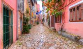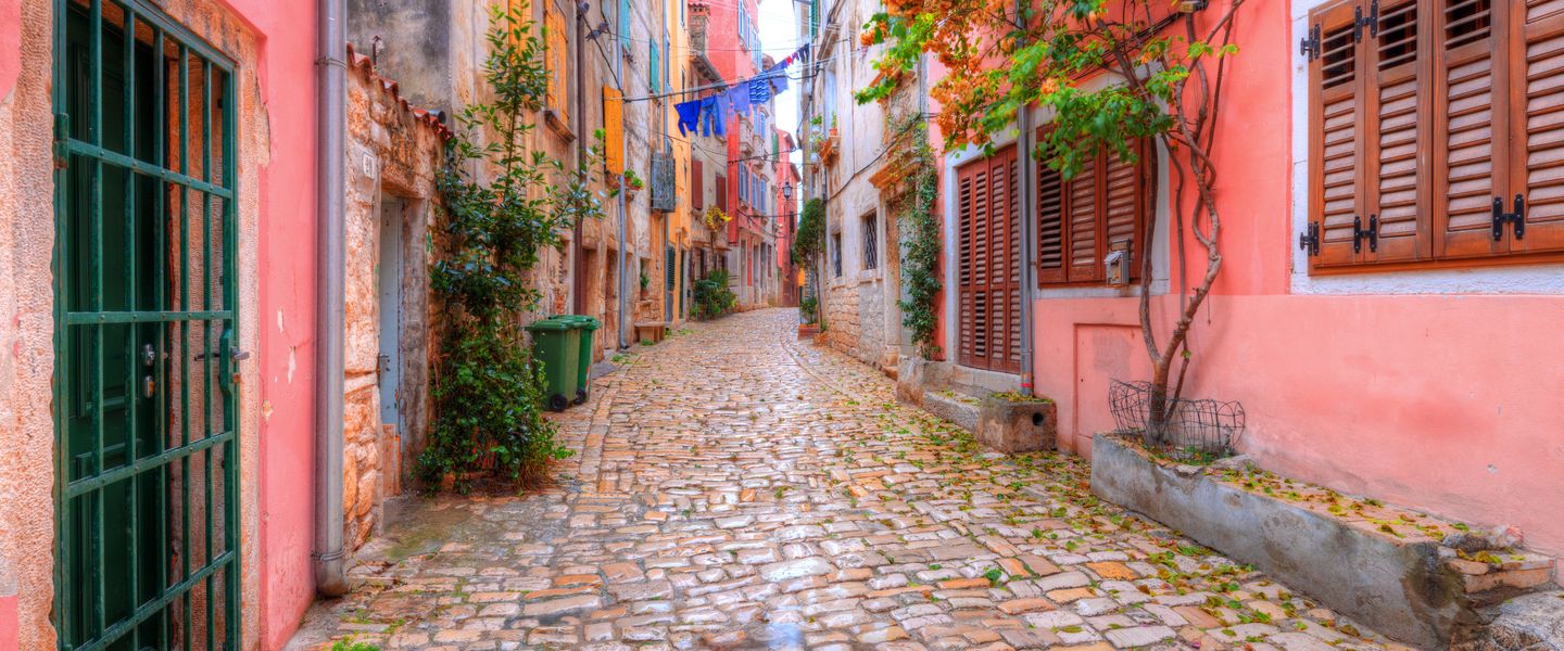 Rovinj, eine malerische Stadt an der Westküste Istriens in Kroatien, ist bekannt für ihre charmante Altstadt, die auf einer kleinen Halbinsel thront und von einer alten Stadtmauer umgeben ist. Die engen kopfsteingepflasterten Gassen führen zu einem Labyrinth aus Boutiquen, Kunstgalerien, gemütlichen Cafés und Restaurants, die lokale Spezialitäten anbieten.