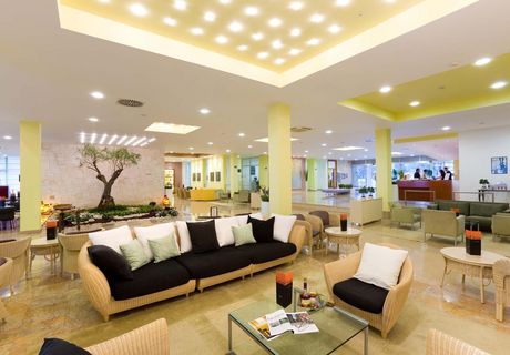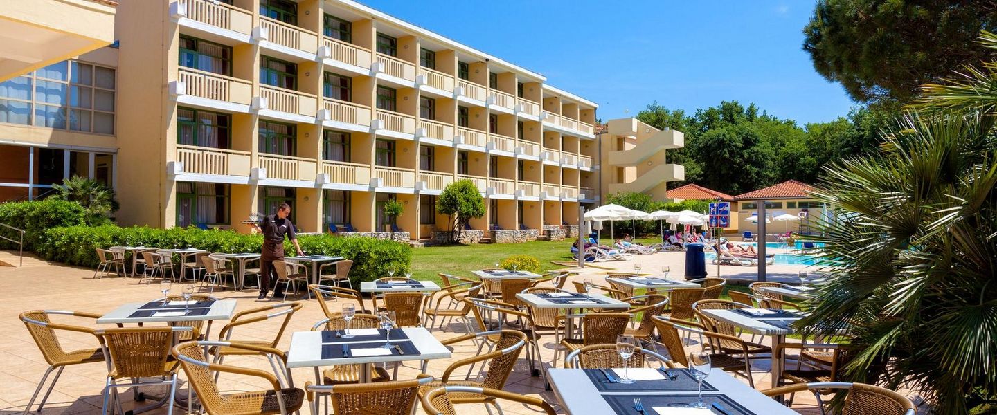 Ideal für Familien und Kinder! Die Innenräume sind mit dem rustikalen, dörflichen Stil Istriens ausgestattet und überall finden Sie Lavendel und Olivenbäume. Die Lobby sieht sogar aus wie ein kleiner Dorfplatz, mit der Rezeption auf der einen und einer Bar auf der anderen Seite.
