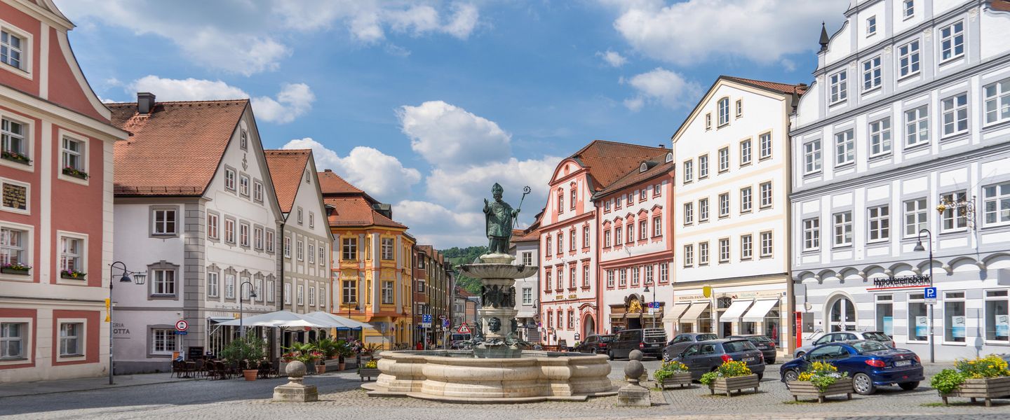 Die Stadt selbst hat einen charmanten Kern mit gepflegten Straßen und Plätzen, auf denen Sie bayerische Gastfreundschaft und regionale Köstlichkeiten erleben können. Der Ort bietet auch kulturelle und historische Sehenswürdigkeiten, wie die Alte Kapelle und das Römische Museum.