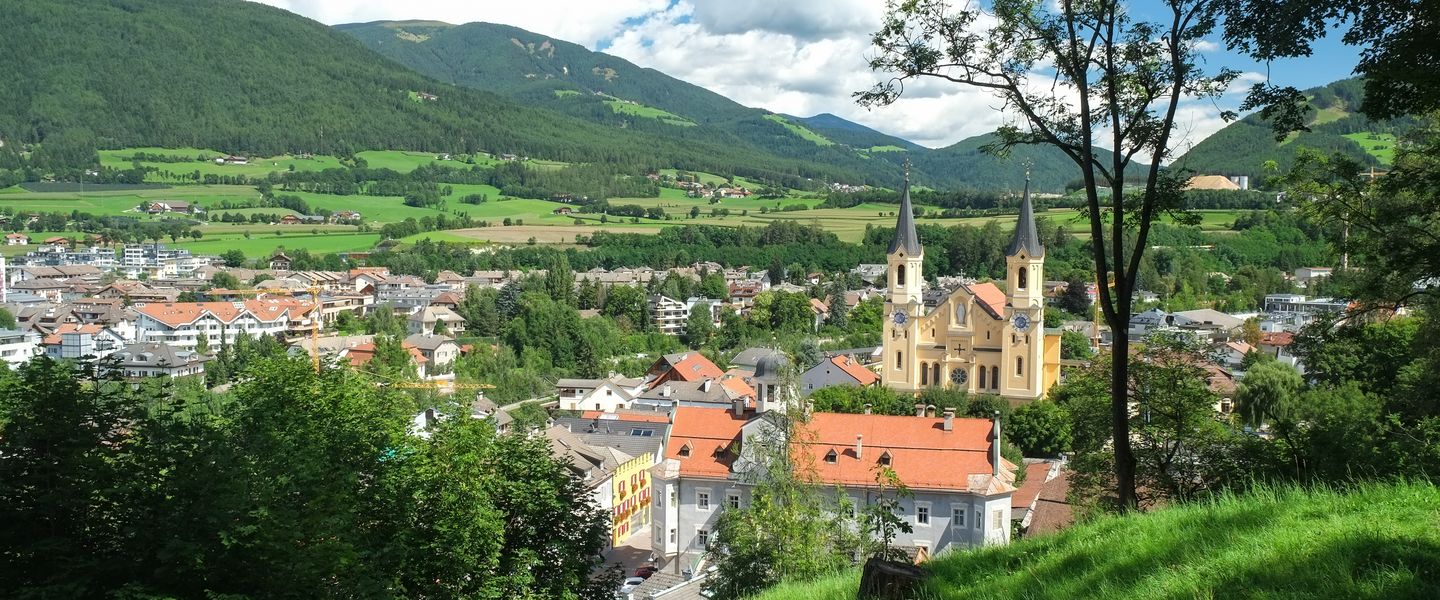 In Bruneck laufen die Fäden zusammen. Hier, wo das Tauferer Ahrntal und das Gadertal ins grüne Pustertalmünden, hier wo die Ahr in die Rienz fließt, hier trifft mondänes Flair auf das urtypische Südtirol: in Form von Architektur, von Kultur- und Freizeitangeboten und - ja auch der Charakter der Stadtbewohner zeugt davon! Das Schloss Bruneck auf seinem bewaldeten Hügel und die Rainkirche sind schon von weitem zu sehen. Schreitet der Besucher nun durch eines der imposanten Stadttore, findet er sich inmitten bunten Treibens wieder. Kleine Läden neben Boutiquen großer Namen, Cafés und Vinotheken säumen die lange Stadtgasse. Bruneck, das Herz des Pustertals, pulsiert in mitreißender Lebendigkeit. Im Jahr 2009 wurde Bruneck zur lebenswertesten Kleinstadt Italiens gekürt.